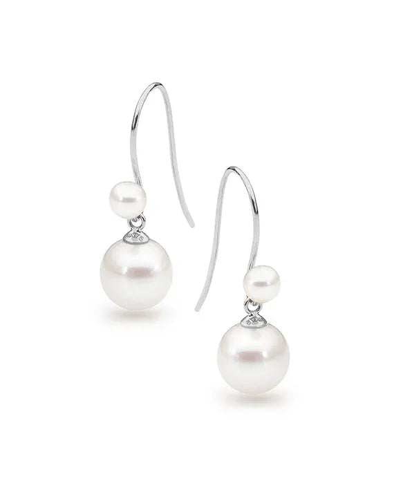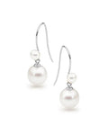 9ct White Gold White Freshwater Double Pearl Earrings. 4mm & 8mm.