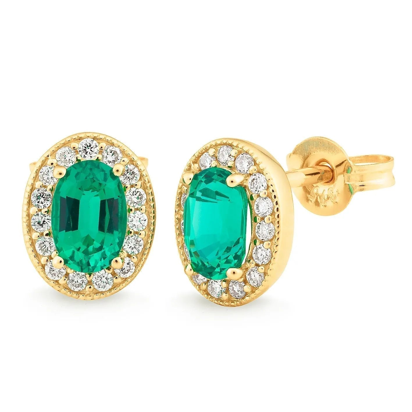 9ct Yellow Gold Emerald & Diamond Halo Stud Earrings