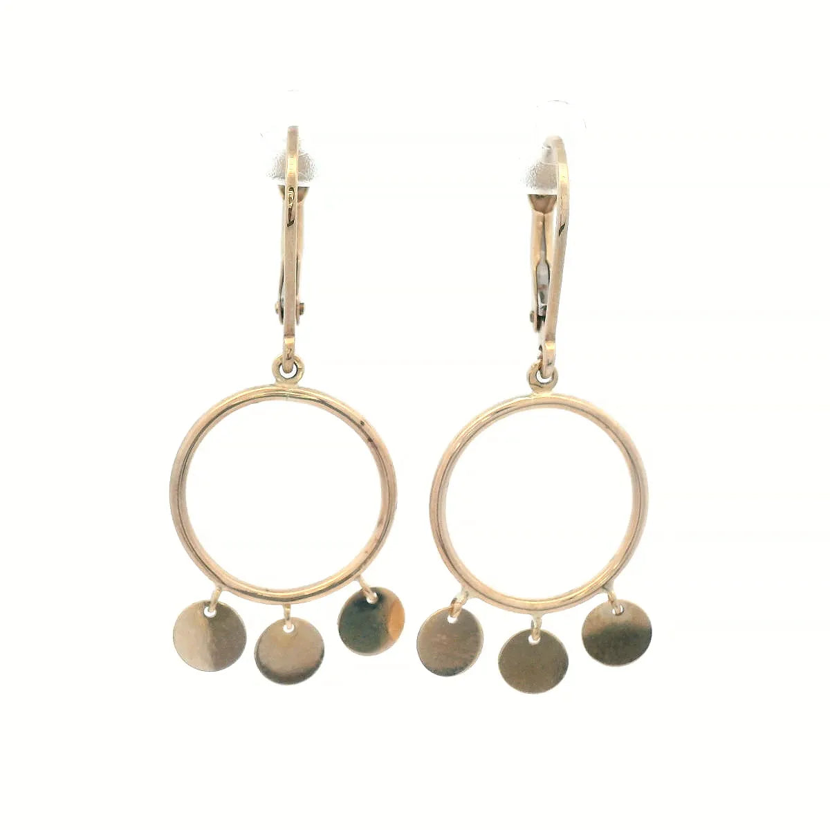 9ct Yellow Gold Circle with Round Discs Drop Earrings