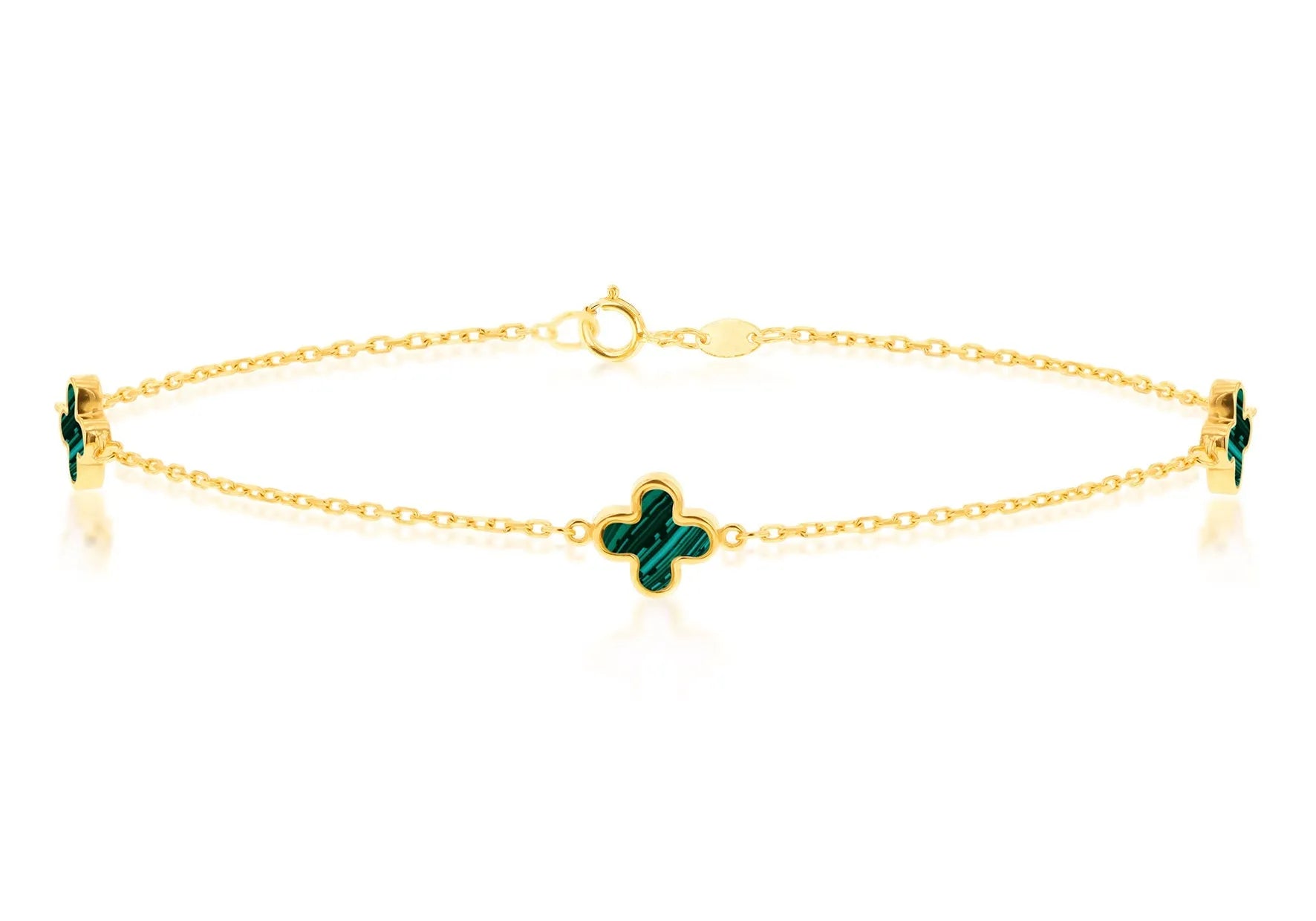 9ct Yellow Gold Malachite Petal Bracelet 19cm