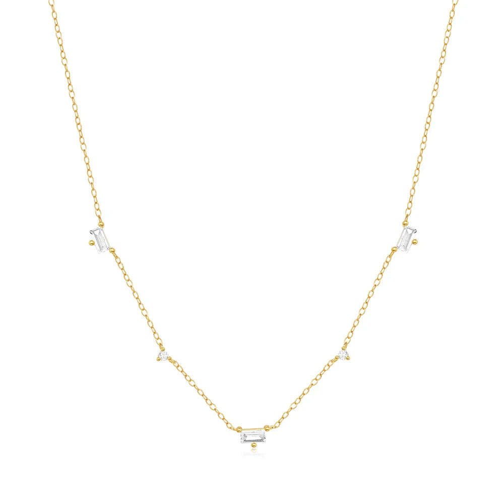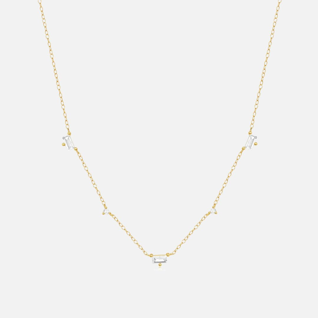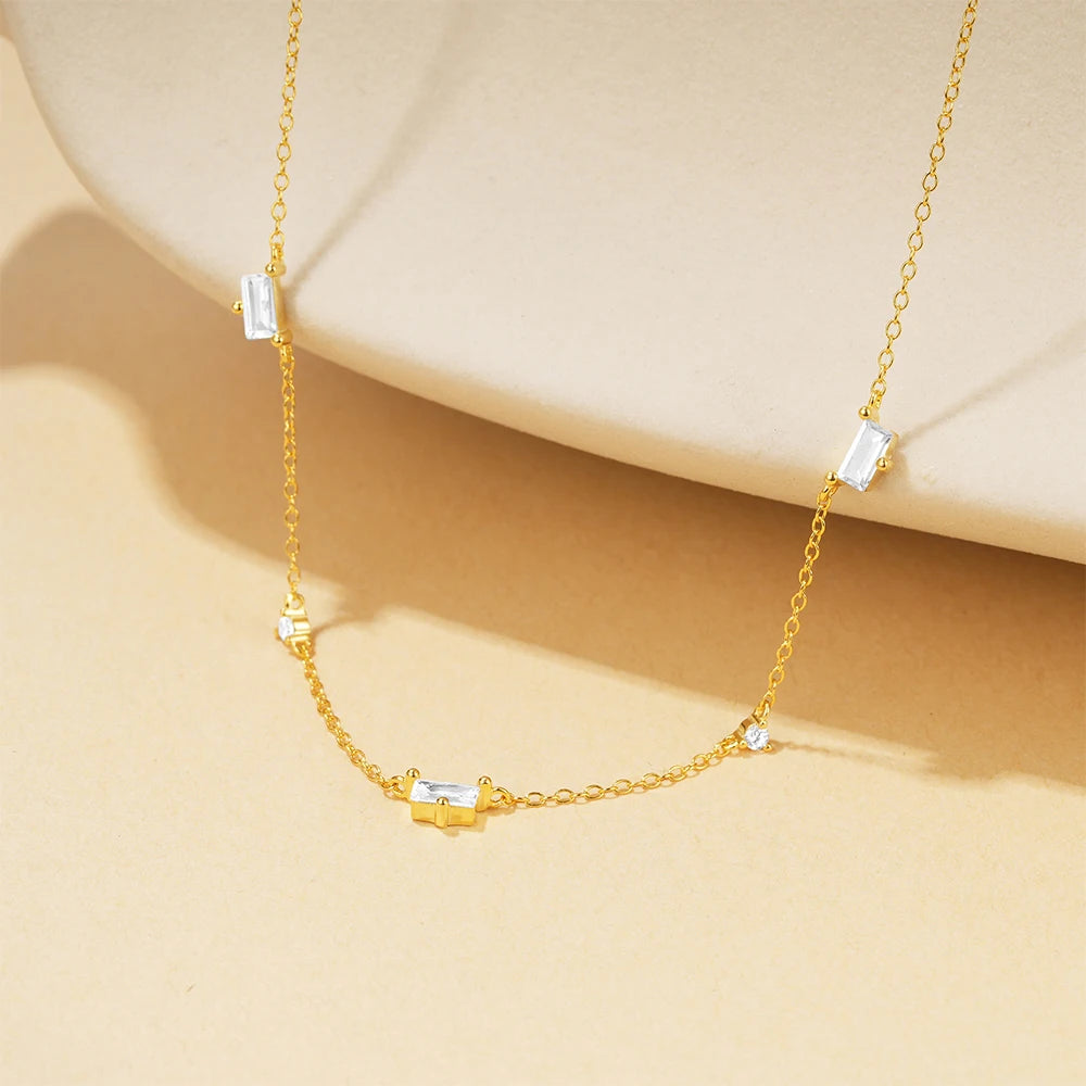 This beautiful necklace features AAAA zircon stones set in a 925 sterling silver chain. The design includes four sparkling zircon stones, each measuring 0.25cm x 0.5cm (0.098in x 0.196in), creating a delicate and elegant appearance. The necklace is 40+5cm (15.74 + 1.96in) in length, ensuring a comfortable fit for various neck sizes. It’s perfect for adding a touch of sophistication to any outfit or wearing on special occasions.