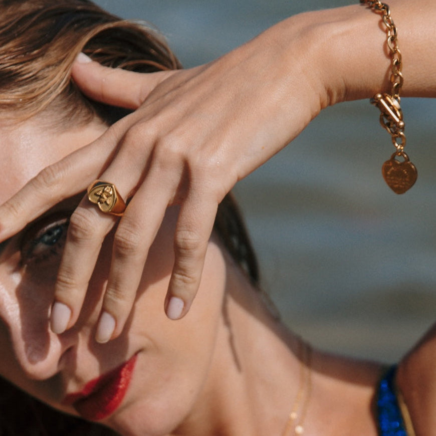 Our Above All Else Gold Bracelet is crafted for the modern individual who values old world elegance. Its polished gold surface exudes warmth and refinement, making it beautiful as well as comfortable. The ideal piece for both special occasions and daily wear. An elegant chain made up 5mm wide gold loops with a secure fob and circle closure plus an engraved heart pendant measuring 15mm across and 15mm in height. This bracelet measures 7.9 inches in length and will fit most wrists easily. Pieces like this is solid gold sell for $4,000 upwards. Ours offers the same look, wear and durability for a lot less.Â