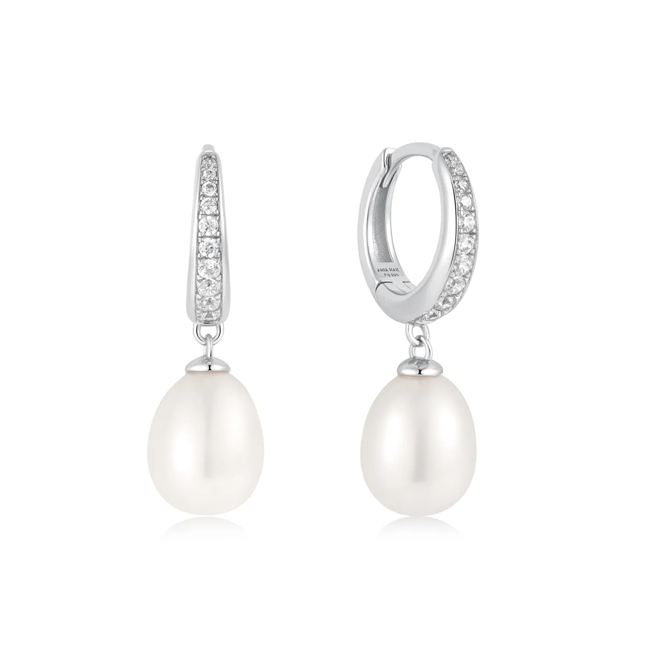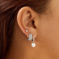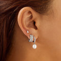 Silver Freshwater Pearl and White Cubic Zirconia Pavé Drop Huggies