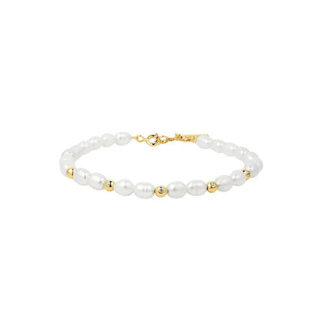 Go for timeless elegance when you choose our freshwater pearl bracelet. This design takes a classic shape and reinvents it with a mix of pearls and 14kt gold-plated sterling silver beads. To add a touch of sparkle, you'll find the cubic zirconia covered on each silver bead.