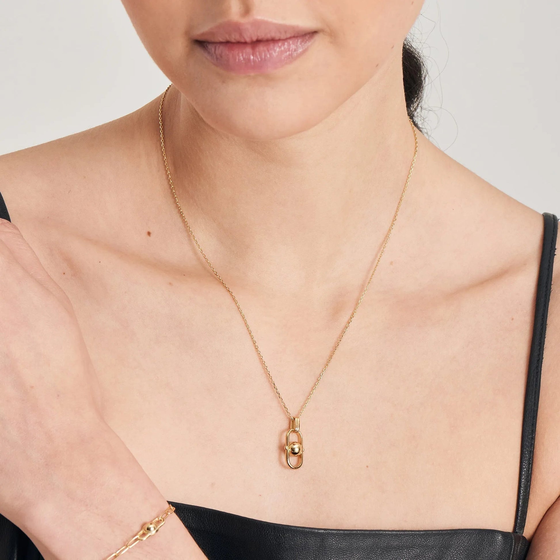 Elevate your everyday necklace collection this season with this statement piece that oozes modern femininity. Set on a delicate gold chain, itβs all about the stunning pendant when it comes to this necklace. A chunky gold link pendant is finished with an on-trend gold orb detail. The perfect piece to layer with chunky chains or simply style with chunky huggies.