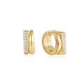 What's better than one hoop? Double hoops. These unique, sculptural earrings are crafted from 14kt gold-plated sterling silver and take the classic huggie hoop to the next level. A sleek, simple gold hoop plus a sparkling cubic zirconia pavé-encrusted hoop in one. These statement earrings update any look from a simple tee to your favourite night time look. Style with a row of simple studs to let the hoops shine.