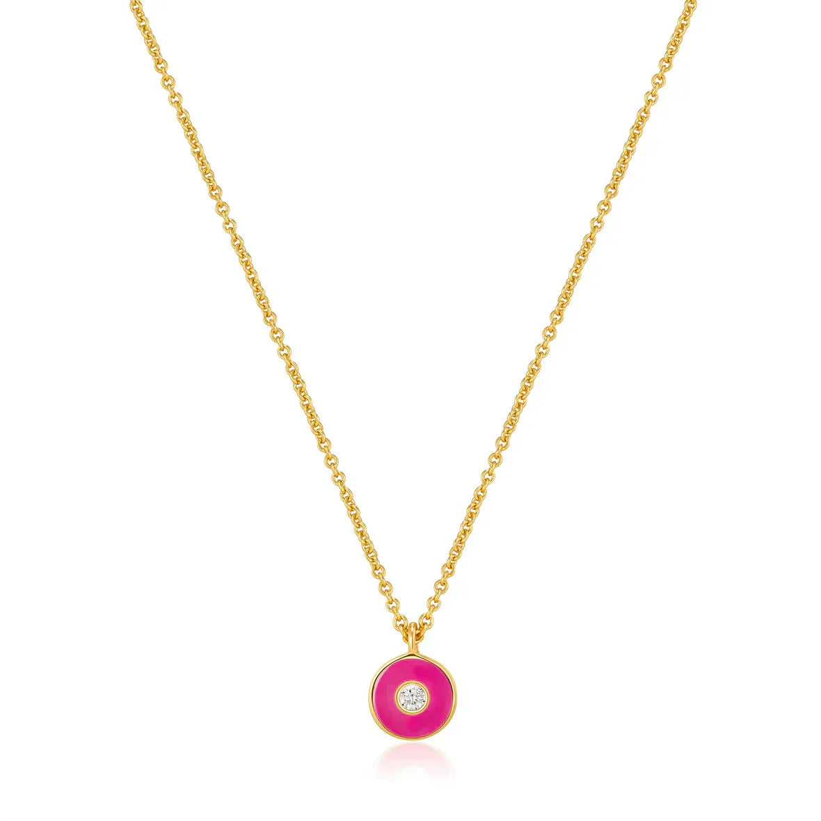 Ania Haie Neon Pink Enamel Disc Gold Necklace