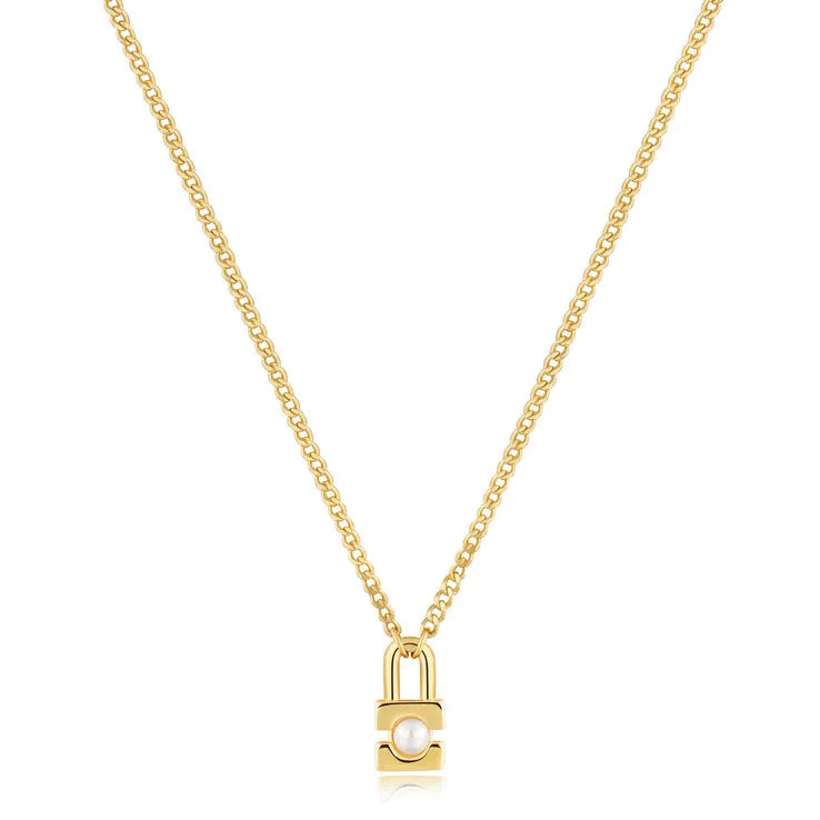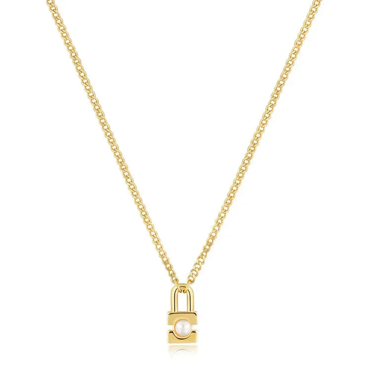 #4 MUSE SIL PRL PADLOCK NECKLACE 45+5cm