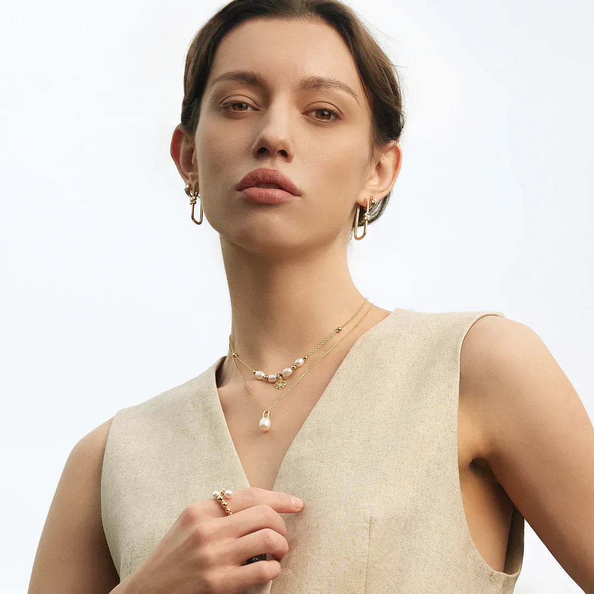 Ania Haie Shell Pearl Geometric Huggie Hoop Earrings