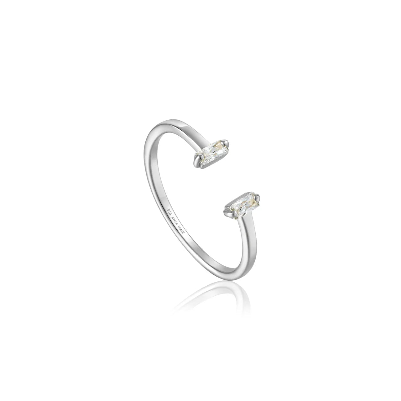 Embrace The Contemporary Baguette Design Trend. Featuring Cubic Zirconia Stones, This Delicate Adjustable Silver Ring Is The Perfect Stacking Piece To Mix And Match.
