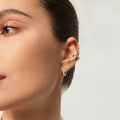 What's better than one hoop? Double hoops. These unique, sculptural earrings are crafted from rhodium-plated sterling silver and take the classic huggie hoop to the next level. A sleek, simple silver hoop plus a sparkling cubic zirconia pavé-encrusted hoop in one. These statement earrings update any look from a simple tee to your favourite night time look. Style with a row of simple studs to let the hoops shine.