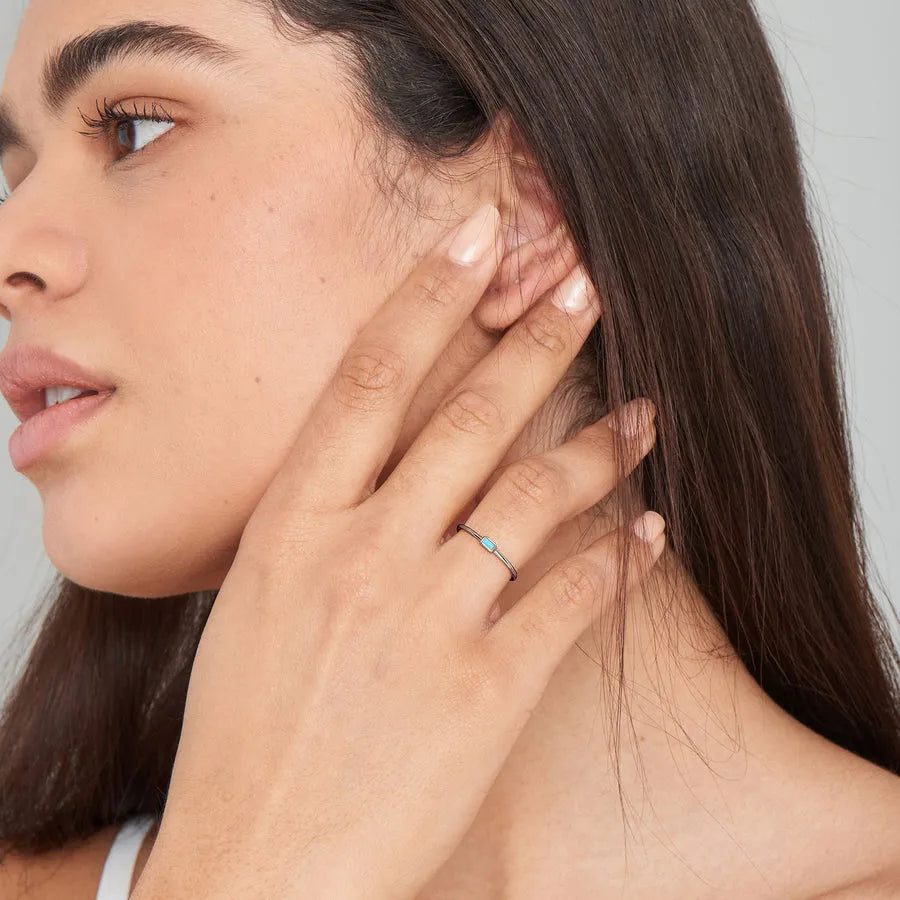 The perfect colourful stacking ring, this simple band is crafted with a single turquoise-colour centre stone.