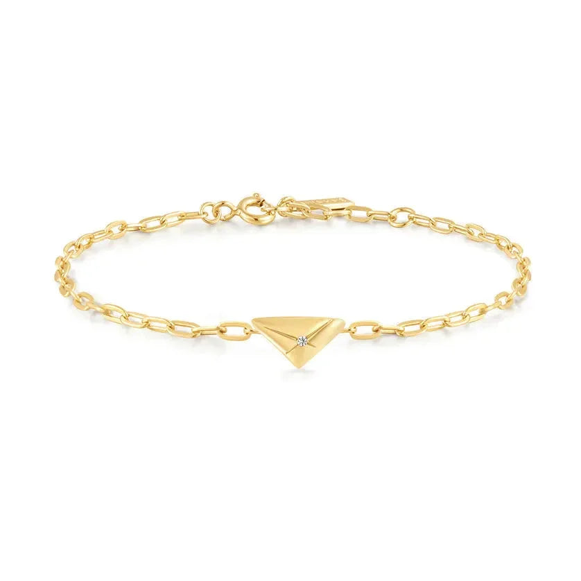 An elevated classic to add to your everyday jewellery rotation, this minimal yet striking bracelet features a triangular shape. Crafted in 14kt gold-plated sterling silver, this contemporary bracelet is the perfect stacking piece for any occasion.