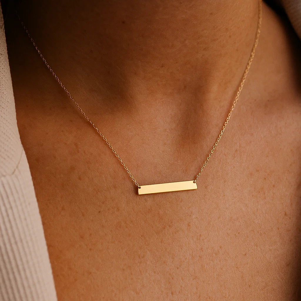 This sleek bar necklace offers a minimalist yet elegant design, perfect for both everyday wear and special occasions. Made from durable stainless steel and finished with a lustrous gold plating, it provides a sophisticated and timeless look. The 45cm chain length ensures a comfortable fit, making it a versatile addition to your jewellery collection. Whether worn alone for a subtle statement or layered with other pieces, this necklace is an essential accessory for modern elegance.