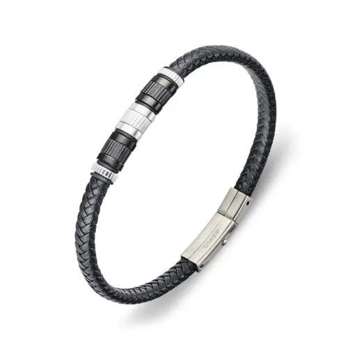 Blaze stainless steel 6mm leather bracelet with steel bead detail