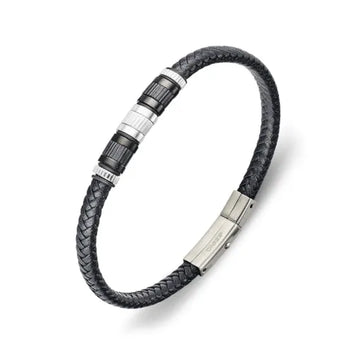 Blaze Stainless Steel 6mm Leather Bracelet With Steel Bead Detail