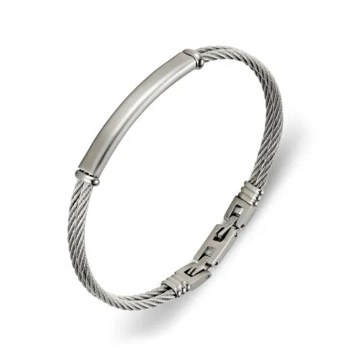 Blaze Stainless Steel 6Mm Wire Bracelet With Engravable Plate