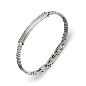 Blaze stainless steel 6mm wire bracelet with engravable plate