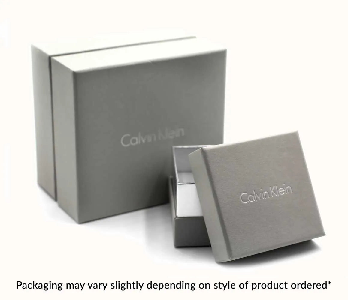 Contemporary Feel: Calvin Klein chain link bracelet features a Gold Asymmetrical Cable Link Chain with Sculptured Tear Drop suitablet for any and all occasions.