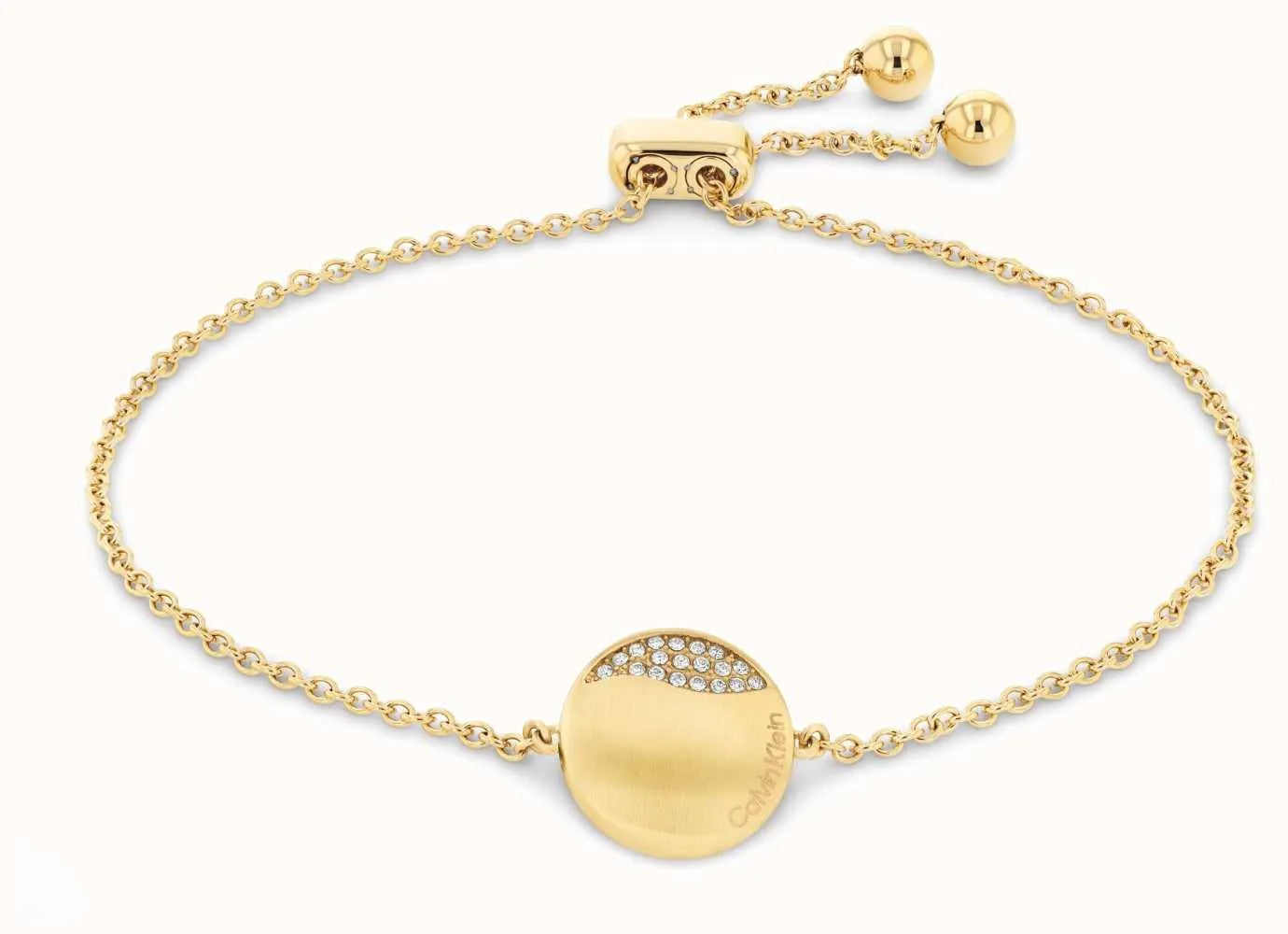 Calvin Klein "Minimal Circular" Colection Gold Tone Crystal Set Disc Bracelet.
