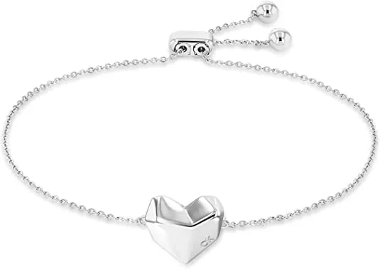 Contemporary Feel: Calvin Klein chain link bracelet features a sculpted, multi-faceted heart for any and all occasions.