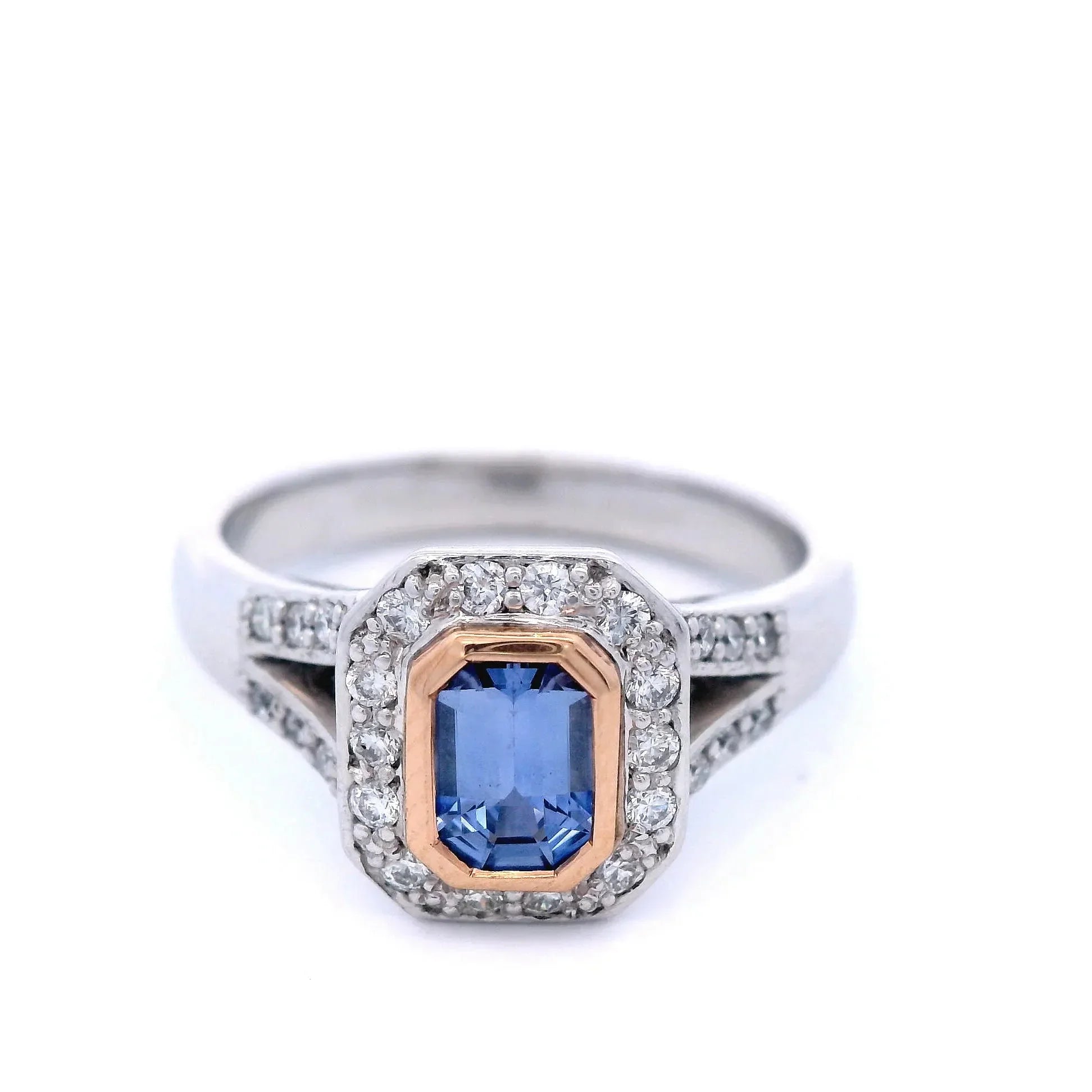 Ceylon Sapphire and Diamond Split Shank Dress Ring in White Gold