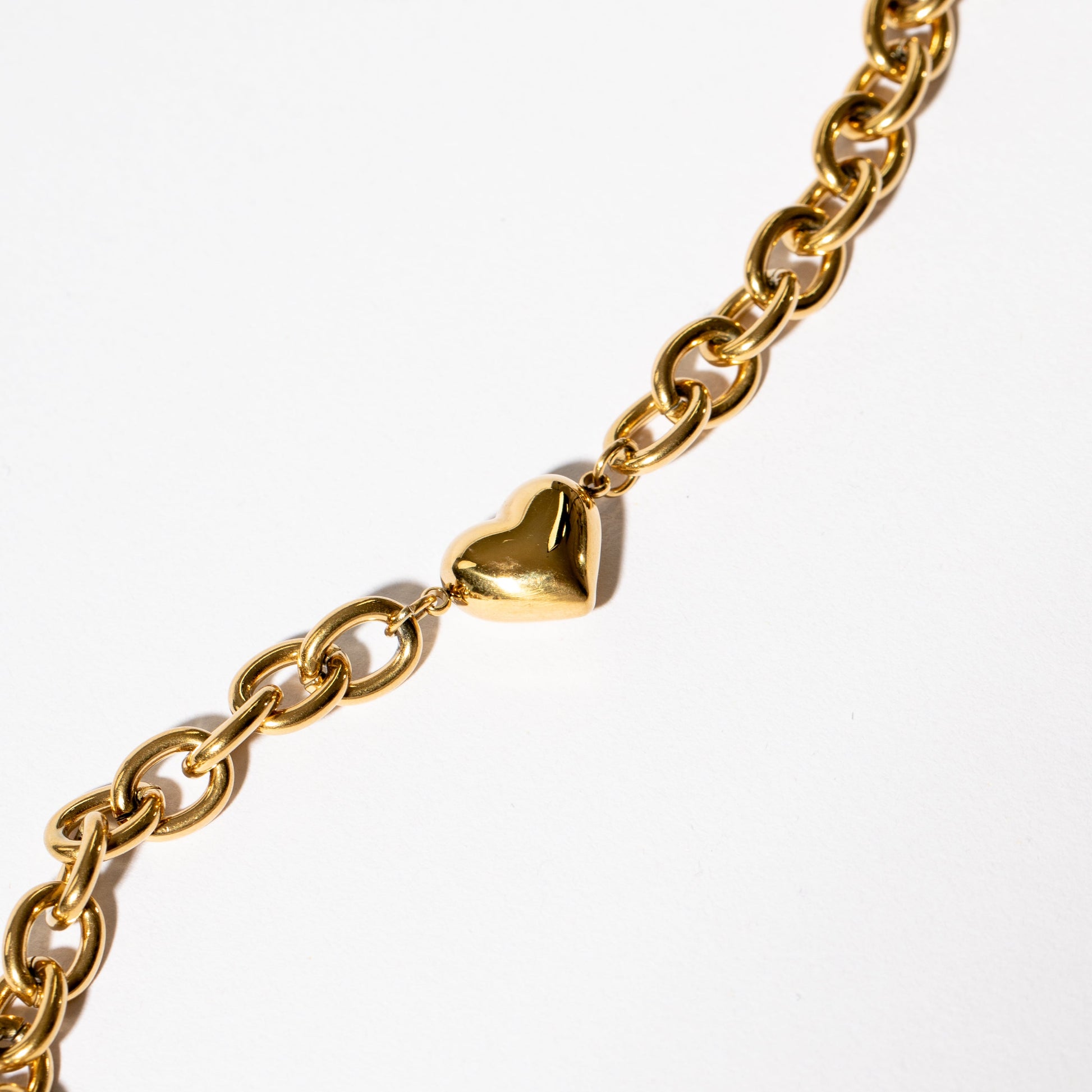 A solid piece that can take daily wear in its stride and give you the same qualities. A wide linked chain supports a 3D solid heart at its middle. You will love wearing this heart on your sleeve and be charmed by it's waterproof, tarnish proof and allergy safe properties. Check out our range of heart pendants and rings too!
