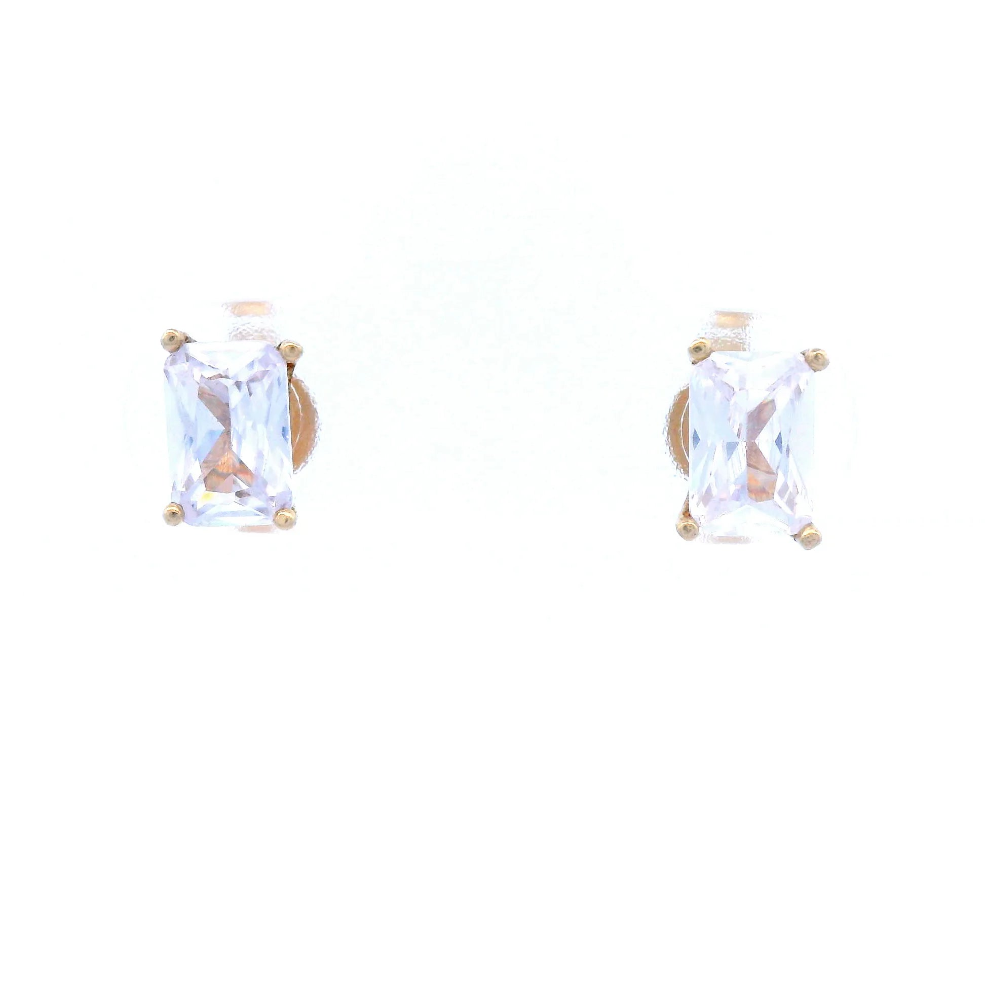 Claw Set 4mm x 6mm Emerald Cut Cubic Zirconia Earrings set in 9 Carat Yellow Gold