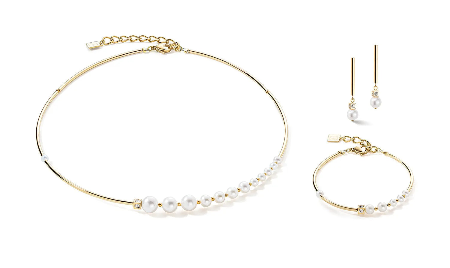Made from genuine freshwater pearls, shimmering pave-set crystals and fine gold plated stainless steel, this classic, elegant necklace is bound to turn heads. Wear this charming necklace with the matching earrings and bracelet for an extremely elegant look.