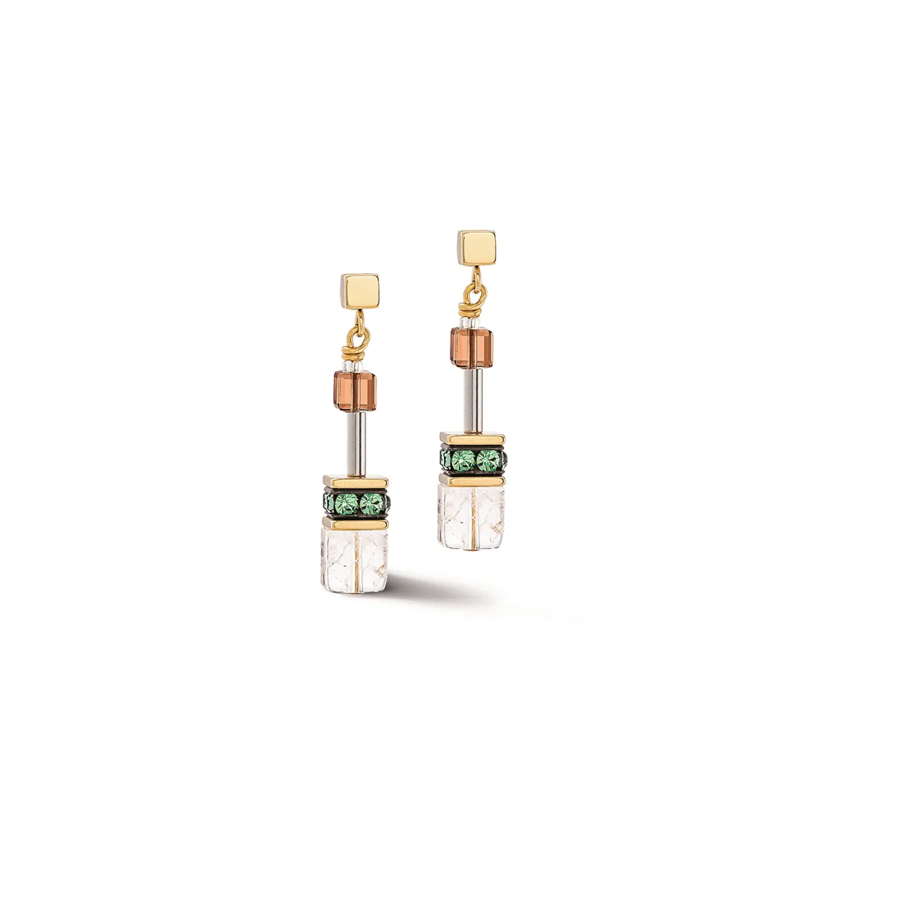 Coeur de Lion GeoCUBE Iconic Nature Earrings in Gold with Olive & Brown