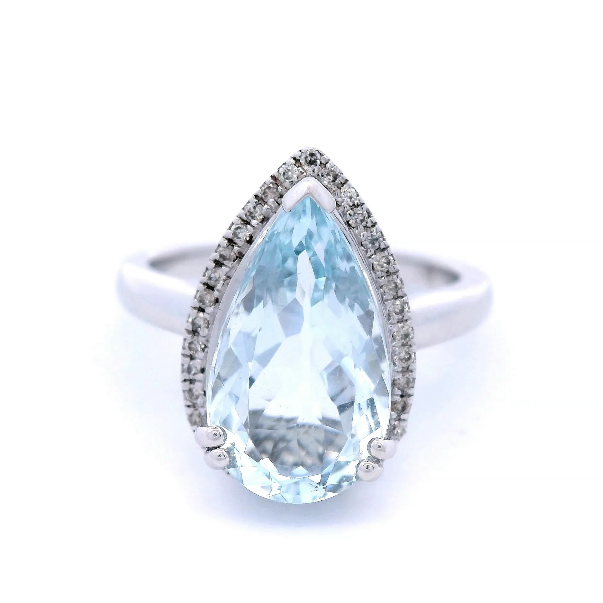 CYR7627 9CT WG DIA & AQUA RING TDW=0.14CT