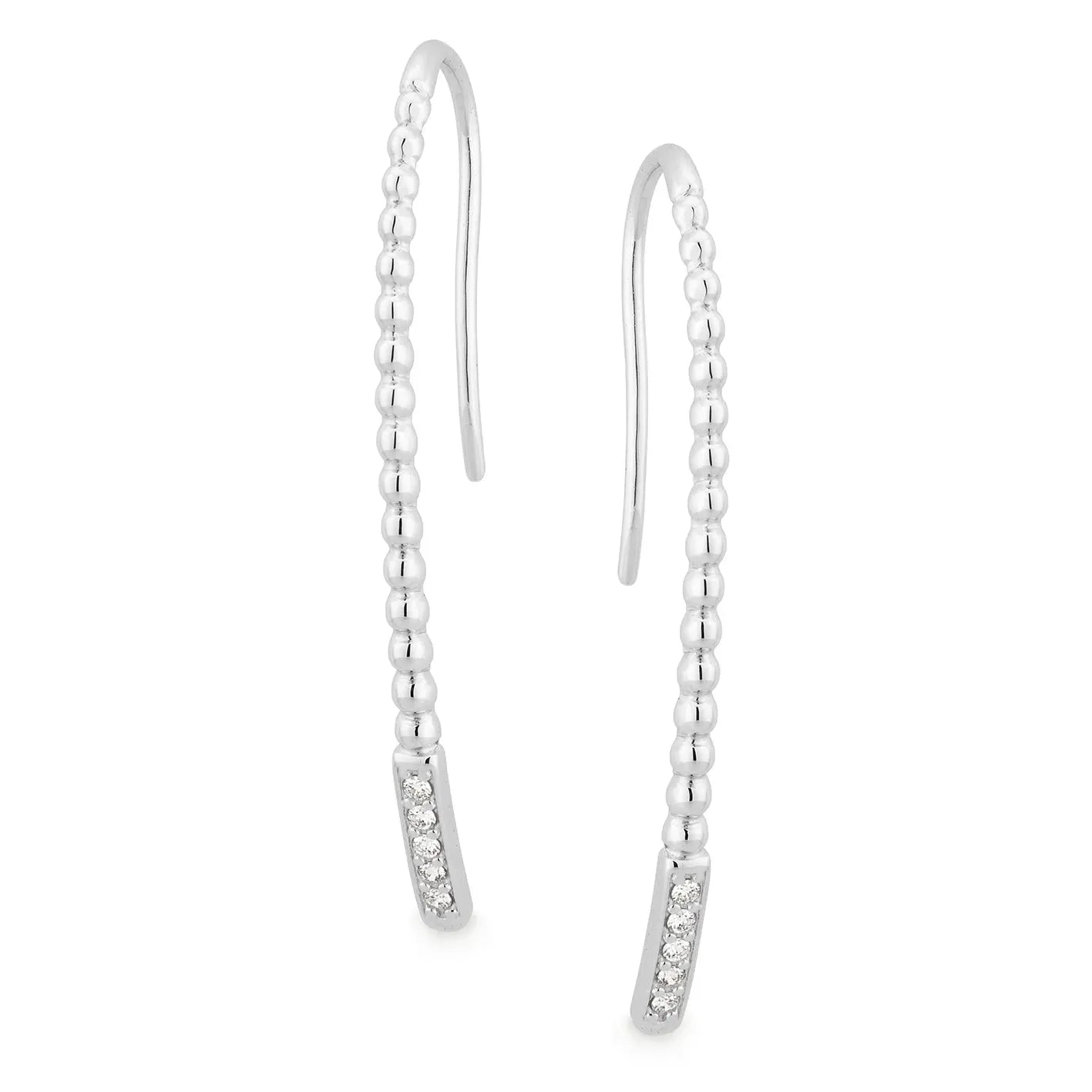 Diamond Bead Set Shepherd Hook Earring in 9ct White Gold