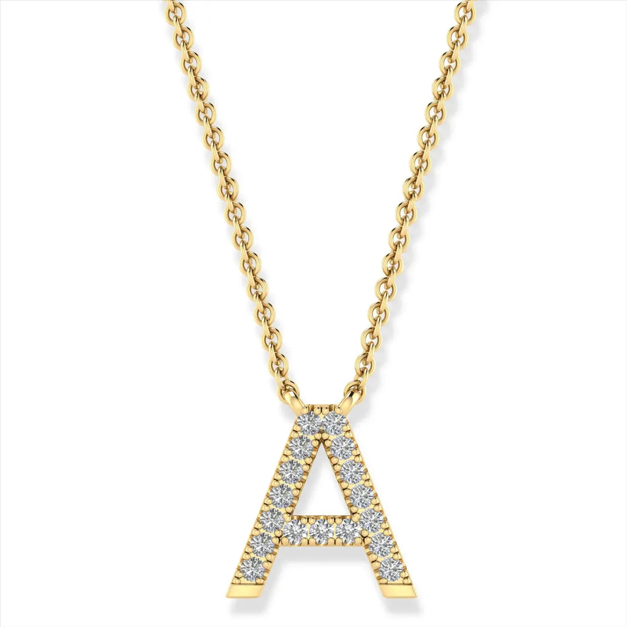 Diamond Set "A" Initial Necklace in 9 carat Yellow Gold