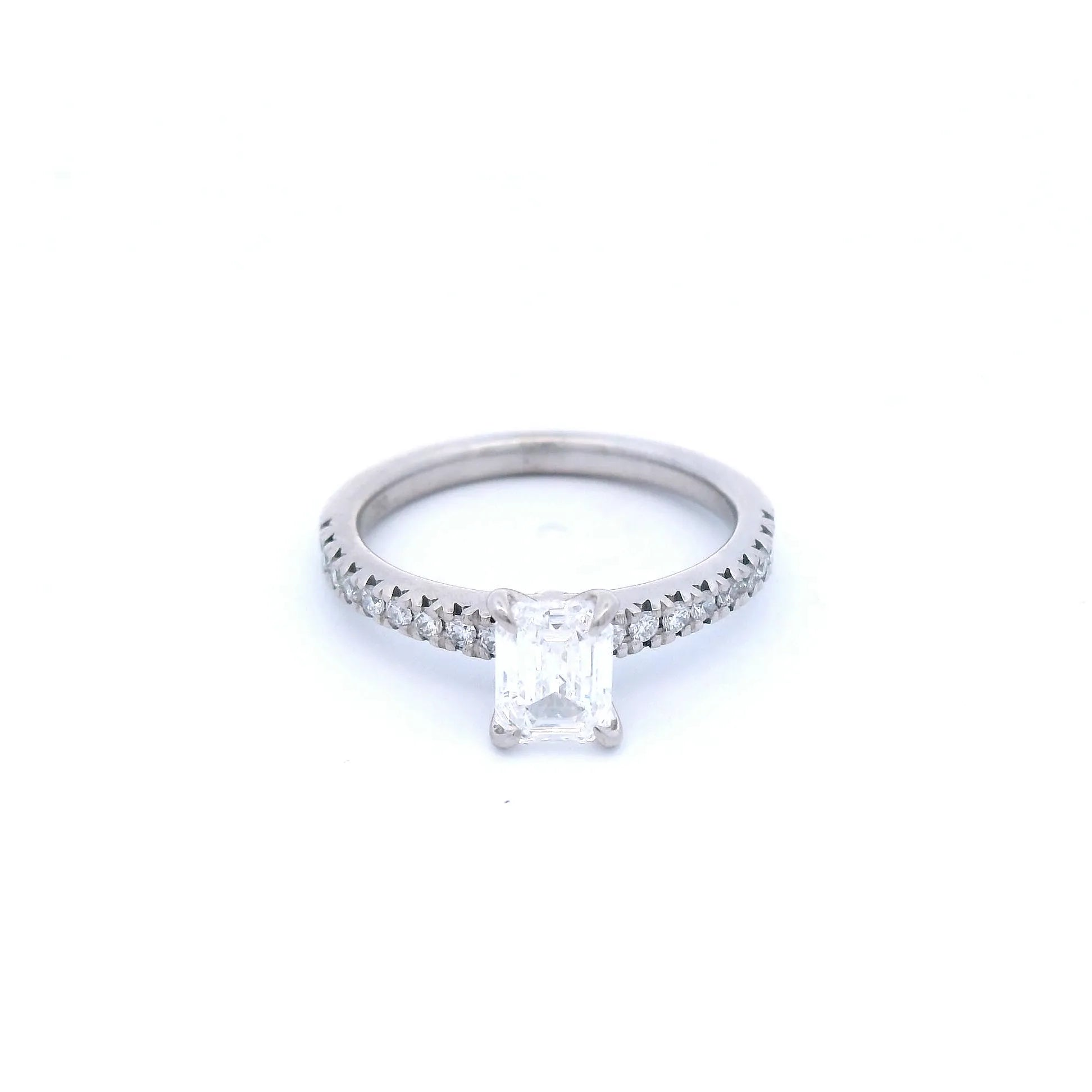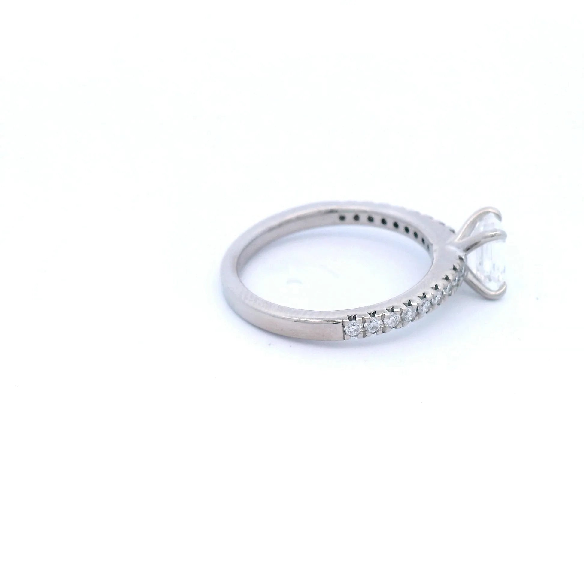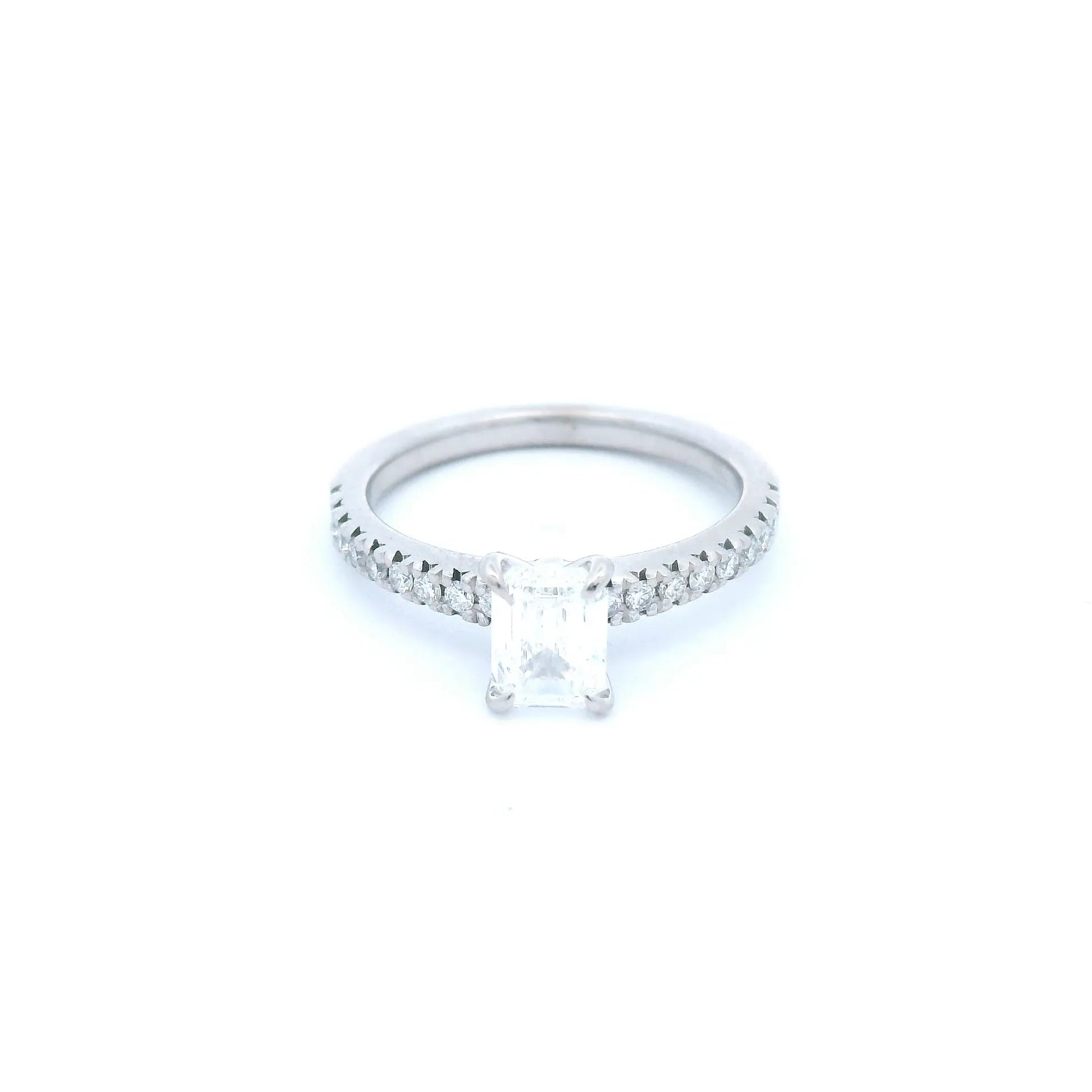 18CT WG 1.01CT E/VS1 EM CUT & 12=.16CT RBC DIA ENG RING