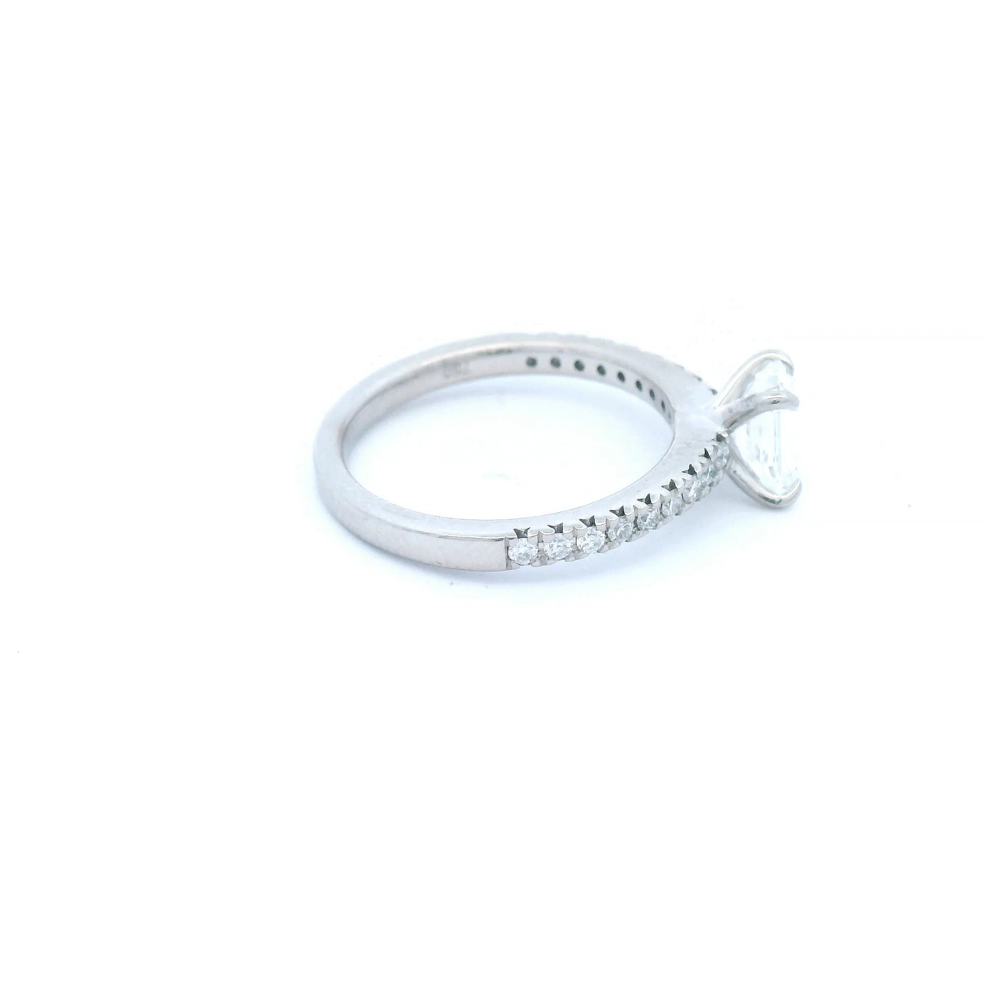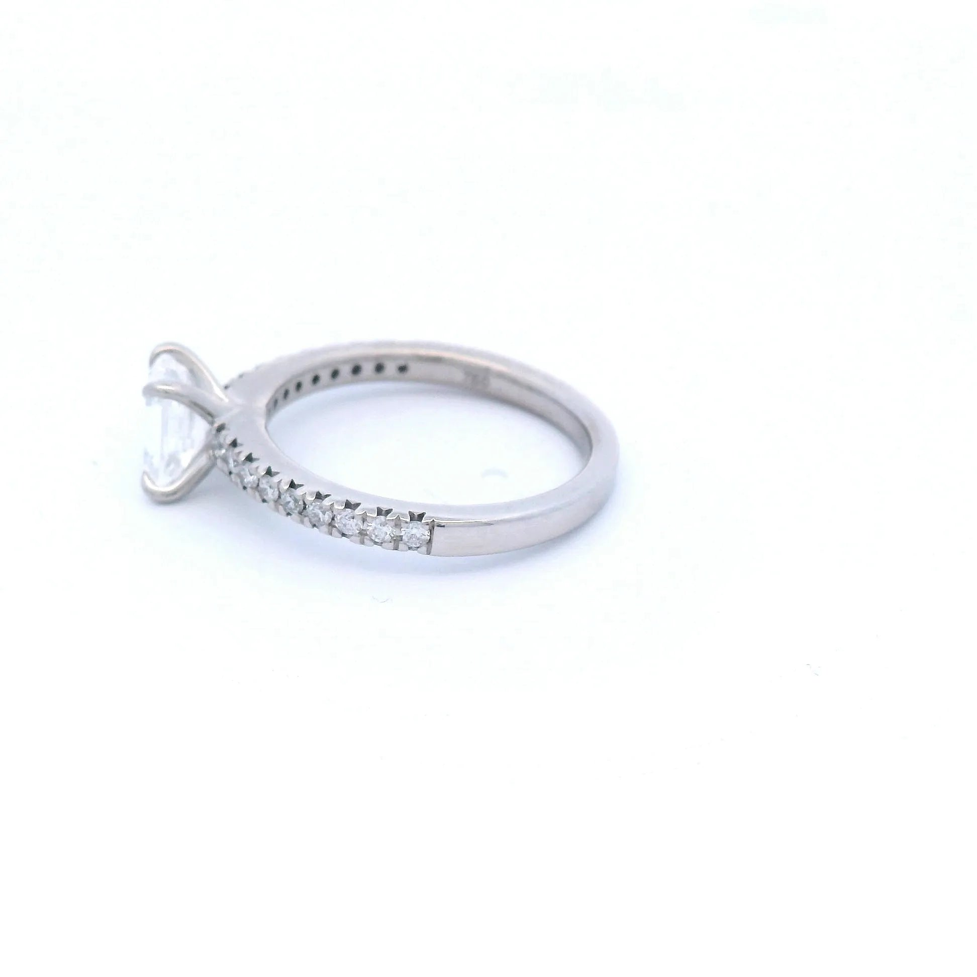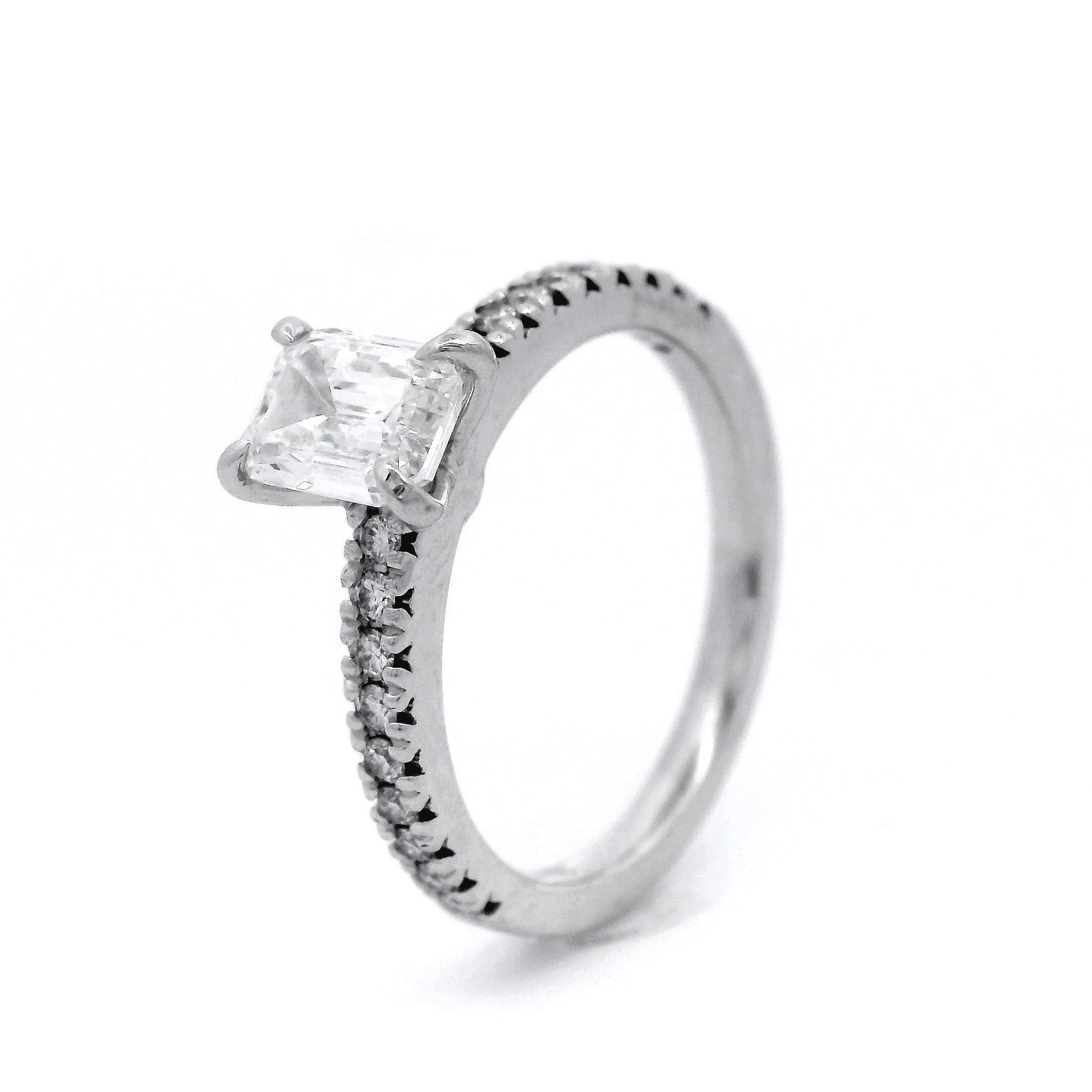 18CT WG 1.01CT E/VS1 EM CUT & 12=.16CT RBC DIA ENG RING