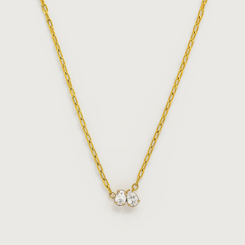 This elegant necklace features a stunning double-cubic zirconia pendant, set in a durable gold-plated stainless steel chain. The pendant showcases two sparkling cubic zirconia stones, each measuring 5.5mm and 10mm in size, for a brilliant and luxurious look. With a length of 42.5cm + 5cm extension, this necklace offers a perfect fit for various neck sizes. The fine link chain design adds an extra touch of sophistication, making it an ideal accessory for both daily wear and special occasions.