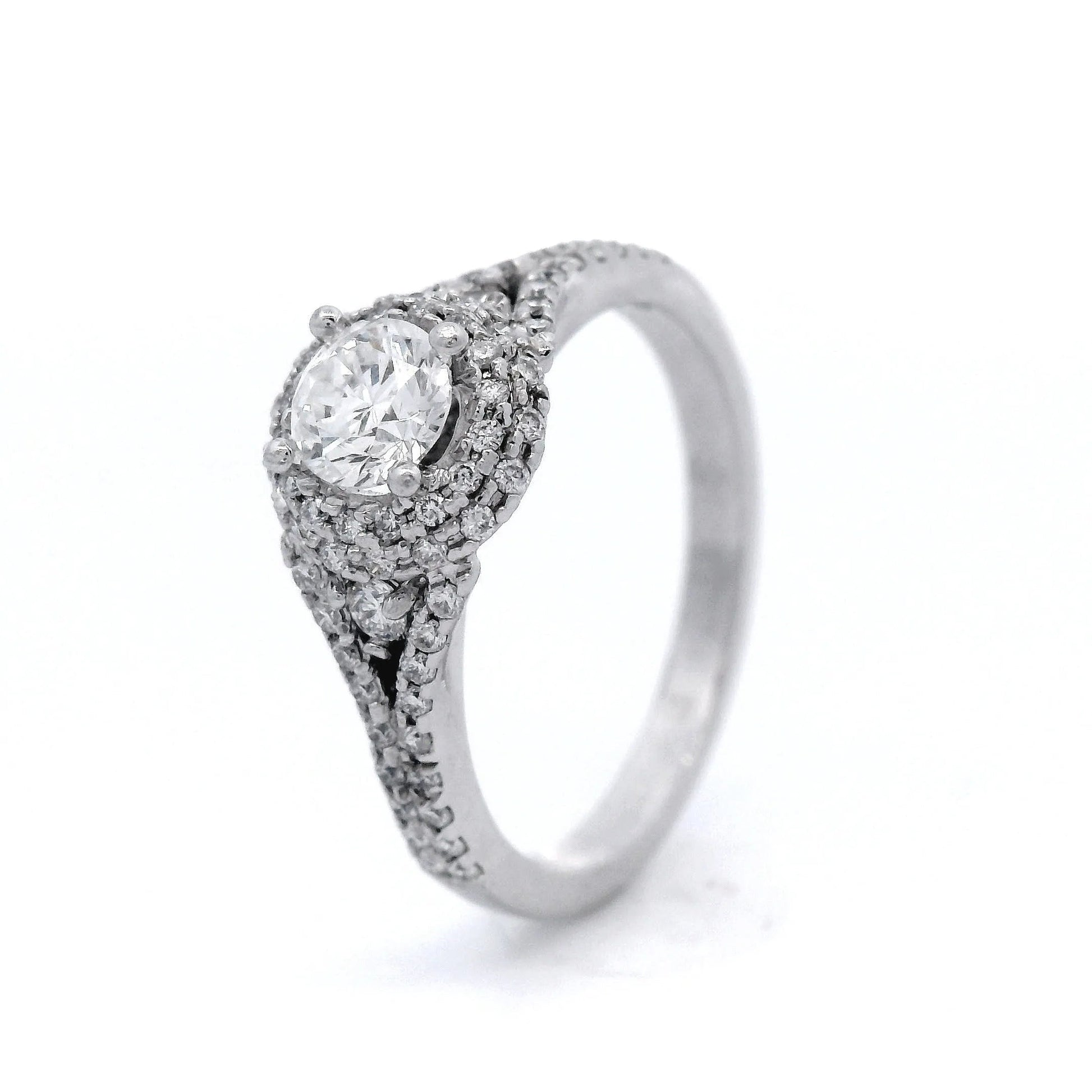 18CT W/G DOUBLE HALO .45CT RBC W' SHOULDER DIAS 68=.38CT 2=.04CT