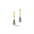 The Glamorous Green amulet earrings in gold will make you look elegant with their sparkling crystals and delicate precious stones. They complement the matching necklace perfectly.
