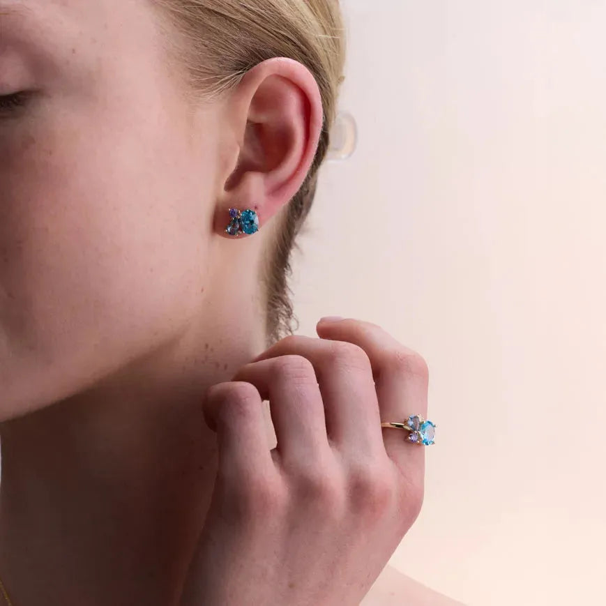 - Premium Multi-Stone Design: Four carefully selected gemstones per earring create a dazzling symphony of color—featuring two show-stopping London Blue Topaz centrepieces complemented by vibrant amethyst and brilliant cubic zirconia accents