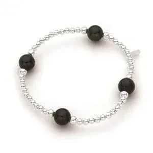 Elastic Ball Bracelet with Oynx in Sterling Silver