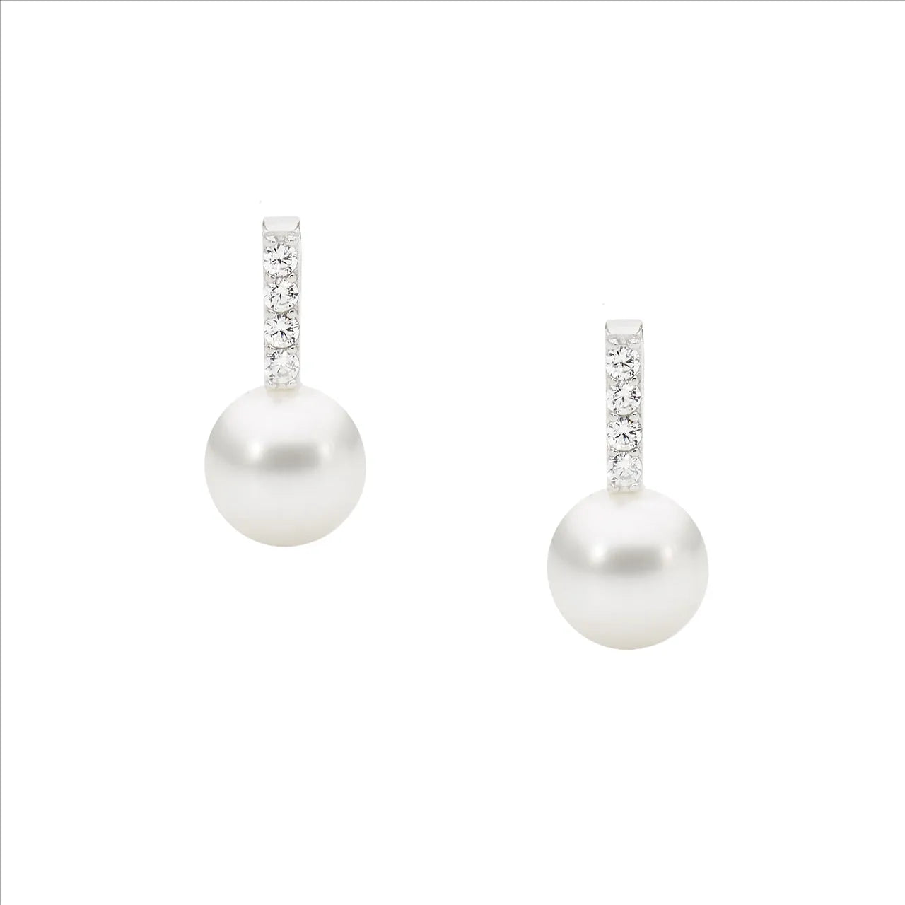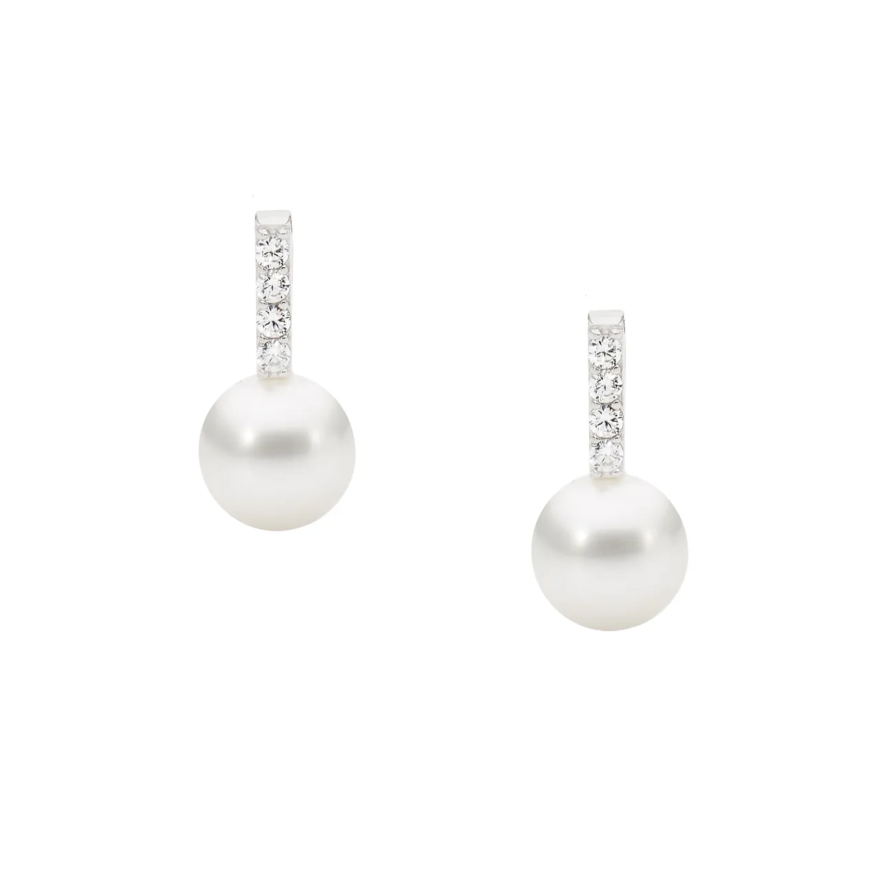 Ellani Cubic Zirconia Drop Bar Studs with Freshwater Pearl