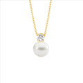 Sterling Silver Freshwater Pearl with Claw Set CZ Necklace