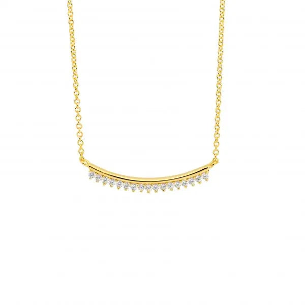 Ellani Gold Curved Bar with Cubic Zirconia Claw Set Necklace