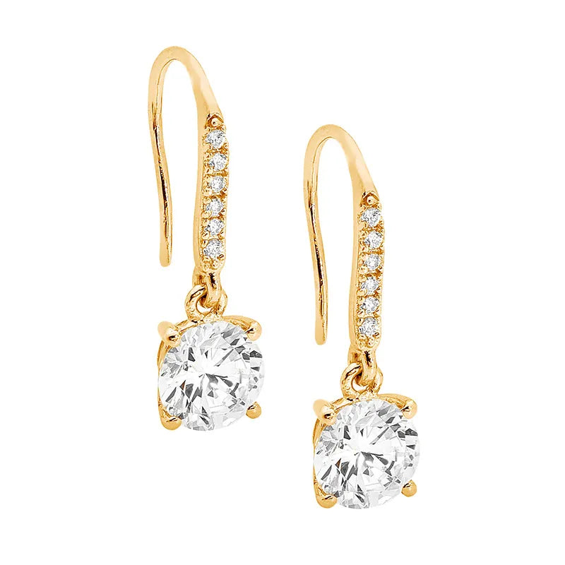 Ellani Gold Plated Shepherds Hook Earrings with Cubic Zirconia Stones