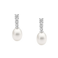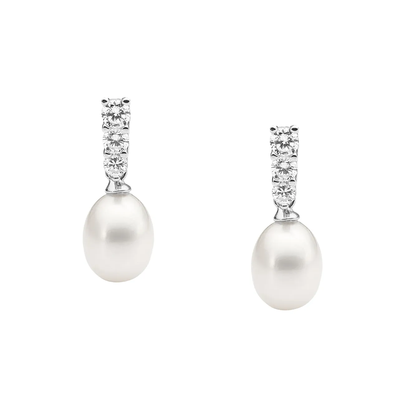 Ellani Drop Pearl Earrings with Cubic Zirconias in Sterling Silver