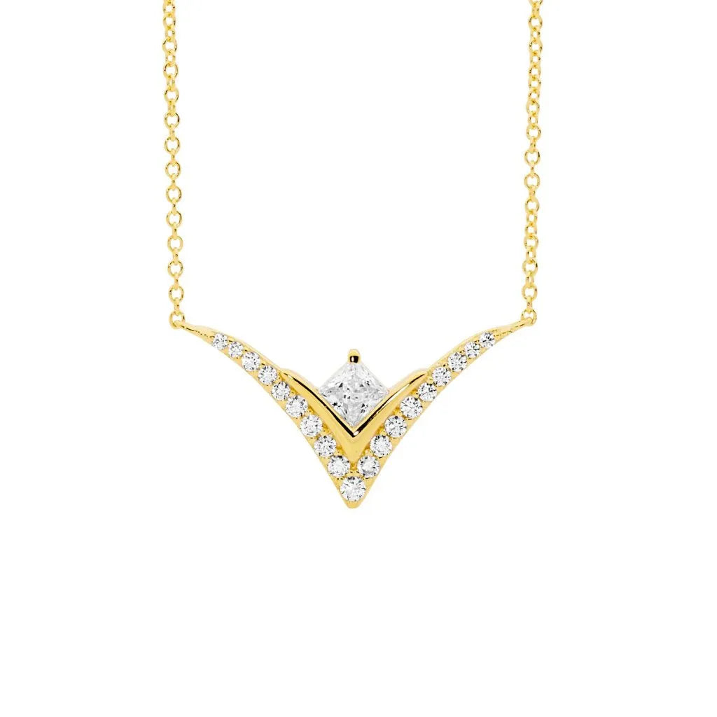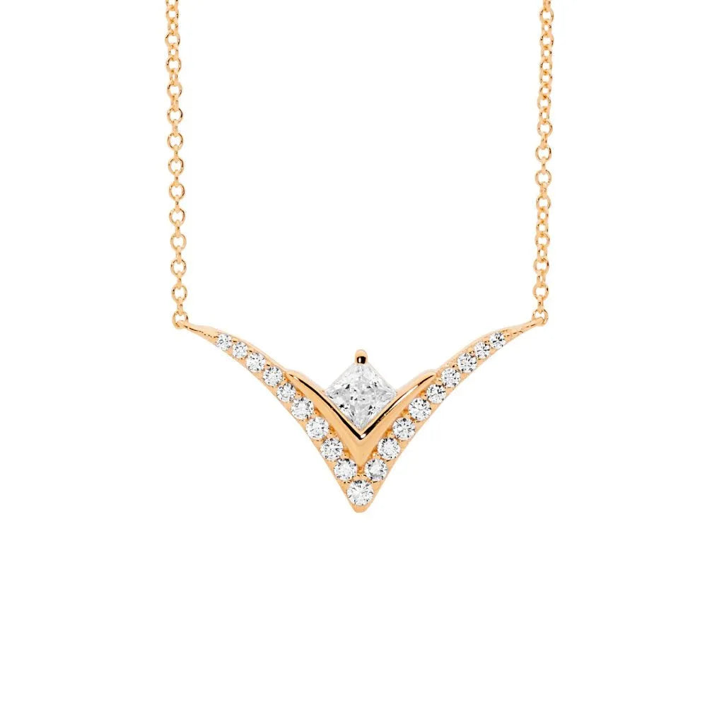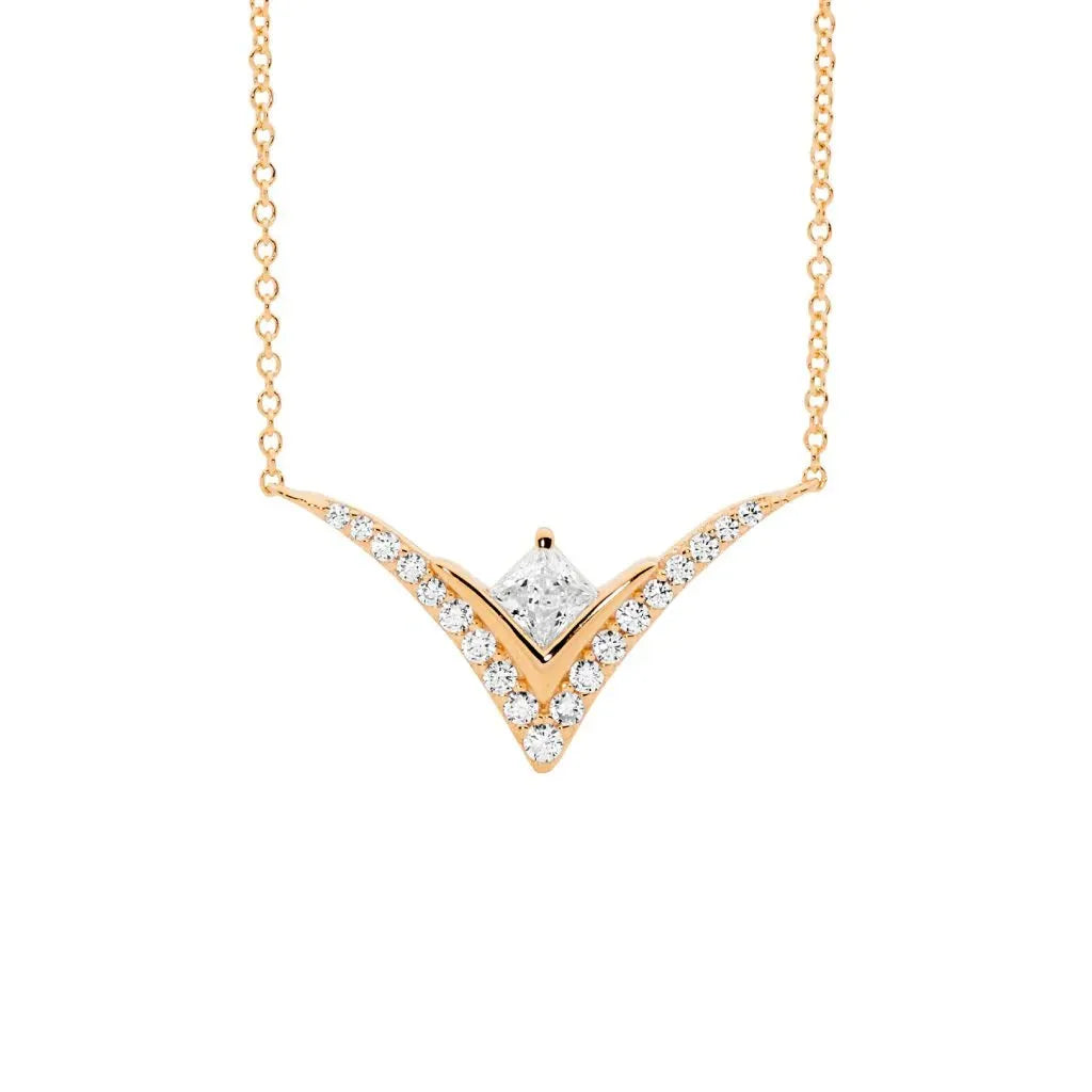 Ellani Princess Cut Cubic Zirconia Wishbone Necklace in Sterling Silver