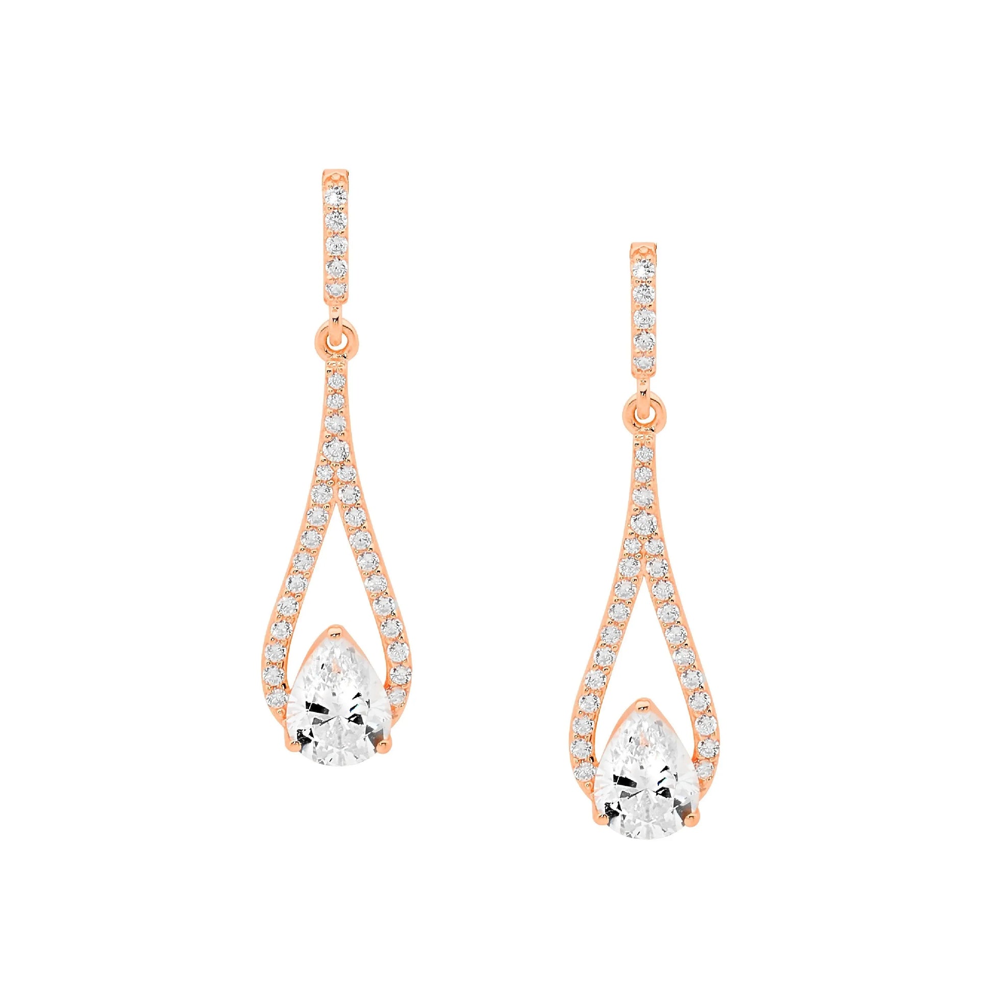 Ellani Rose Gold Plated 35mm Open Tear Drop Earrings