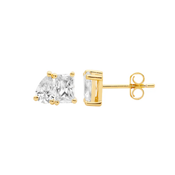 Ellani SS Emerald & Pear Cut Wh CZ Stud Earrings W/Gold Plating