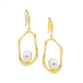 SS Open Oval Earrings W/ Freshwater Pearl On Shp/Hook