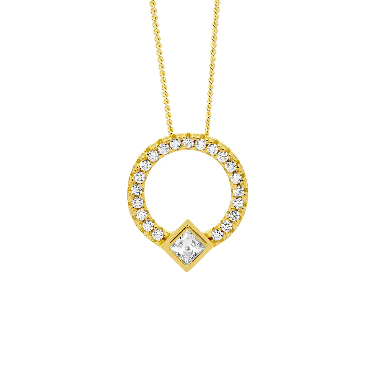 Ellani SS WH CZ 13Mm Open Circle Pendant W/ Princess Cut Bezel Set, Rose Gold Plating